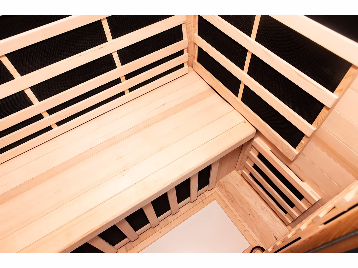 Interiér infrasauny TANVEA Crown Nice 2 je navržen tak, aby podporoval účinek saunování: