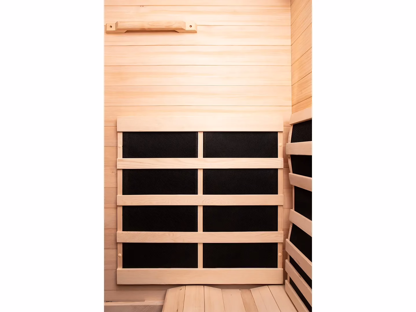 Tělo je v přirozené poloze, teplo se rozkládá rovnoměrně a pobyt v sauně je komfortní i při delším sezení.